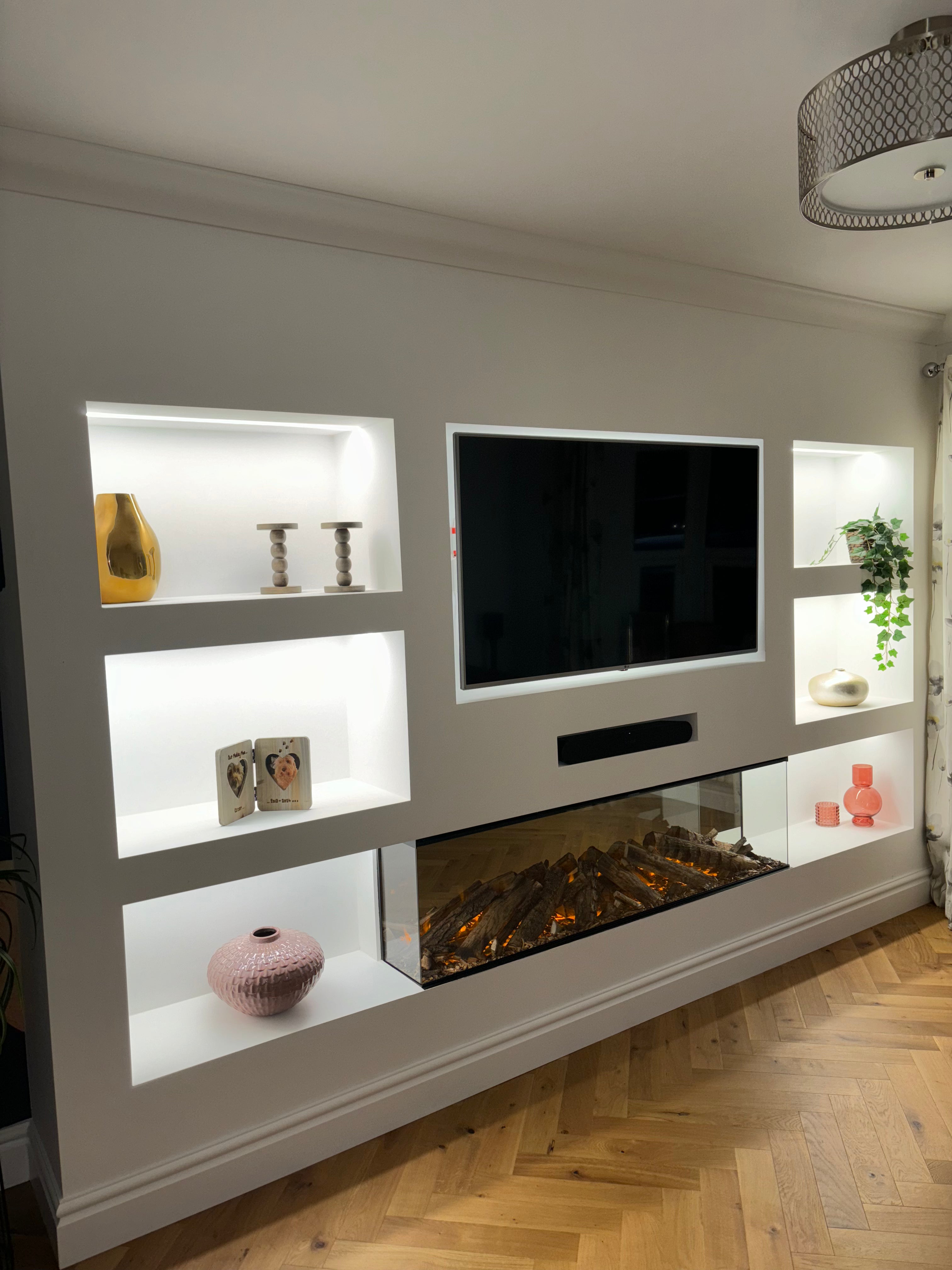 We manage every aspect of your media wall project, ensuring a seamless experience from start to finish. Our comprehensive services include initial design consultations, sourcing high-quality materials, and complete installation of your media wall. Our skilled team pays meticulous attention to detail, guaranteeing that every element is expertly crafted and installed to meet your specific needs. Let us help you create a media wall that not only enhances your entertainment space but also reflects your personal style.